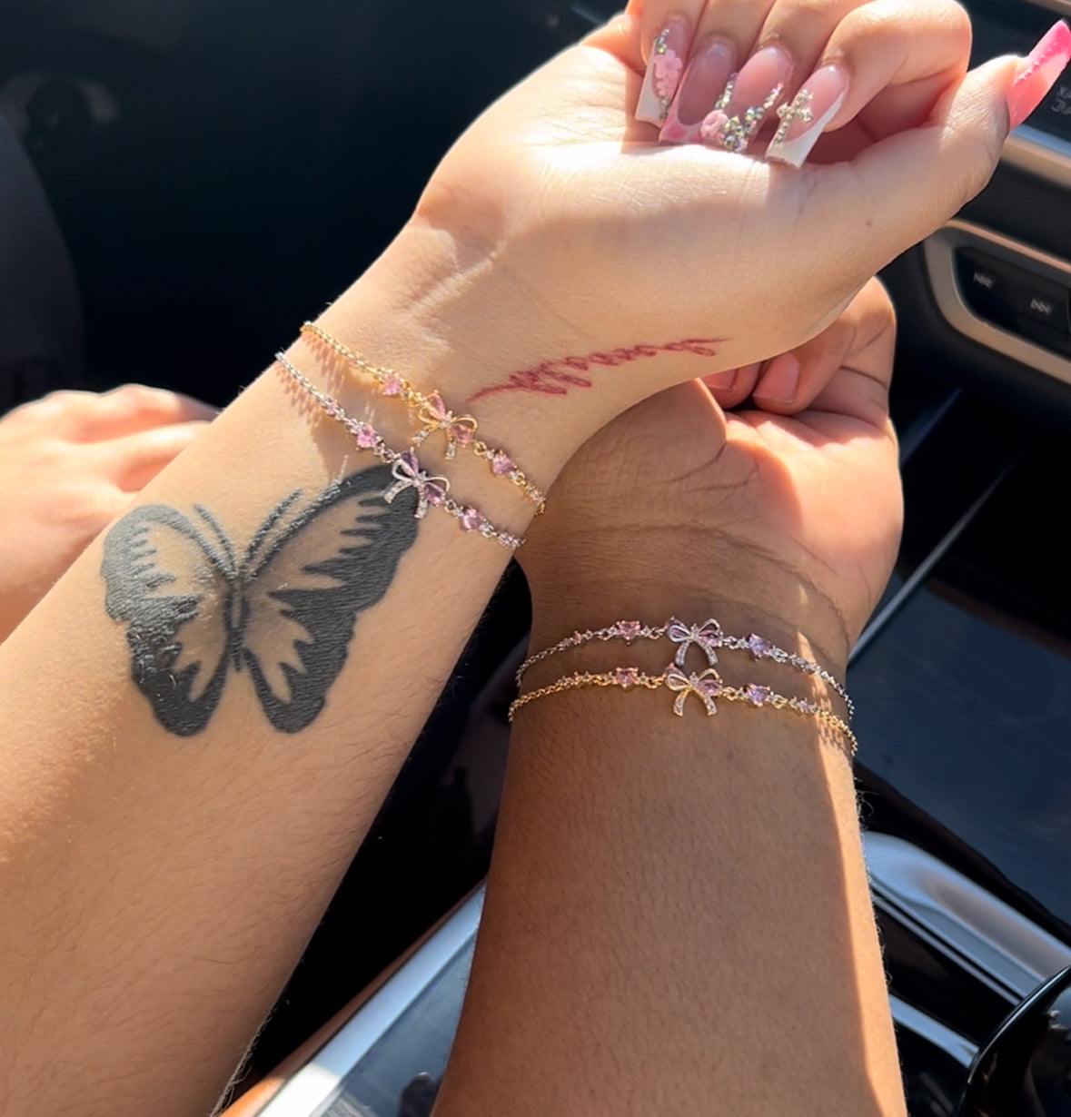 Con un diseño brillante, diseñadas para brillar con intensidad y un moño delicado, estas pulseras inoxidables en dorado y plateado ofrecen belleza y armonía. Hechas con materiales inoxidables de alta calidad, son perfectas para usarlas a diario sin preocuparte por el desgaste